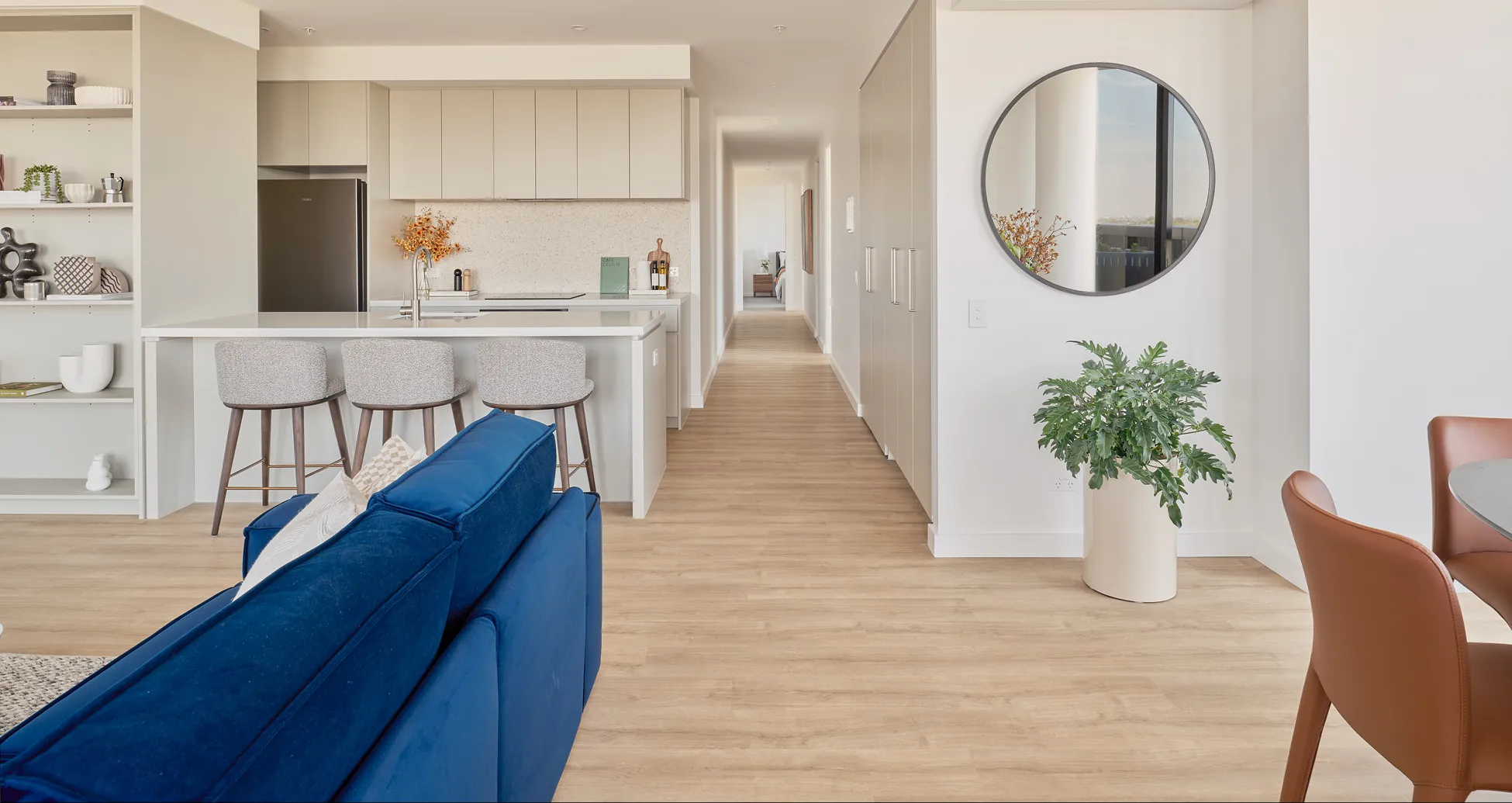 Our 3-bedroom apartments feature two full bathrooms, stylish kitchens, and private oversized balconies. With generous storage and spacious living areas for all to enjoy.
